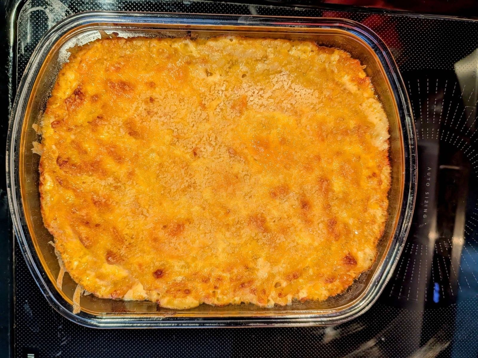 The WinCo Foods medium cheddar melted nicely for this homemade baked mac and cheese. (Bryan M. Vance/Stumptown Savings.)